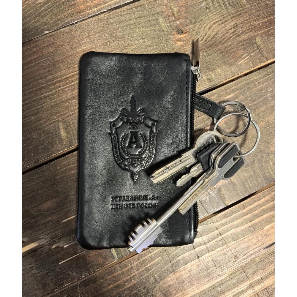 Ключница ручной работы выполнена из натуральной 100% кожи. В ней можно надежно хранить ключи, фиксируя их на прочном металлическом держателе при помощи специального кольца. Изделие оснащено молнией, что обеспечивает дополнительную надежность и позволяет использовать аксессуар с максимальным комфортом. Ключнице "Альфа" можно смело доверить любые ключи – большие и маленькие, она надежно сохранит их в любой ситуации, избавив вас от тревог и опасений.
