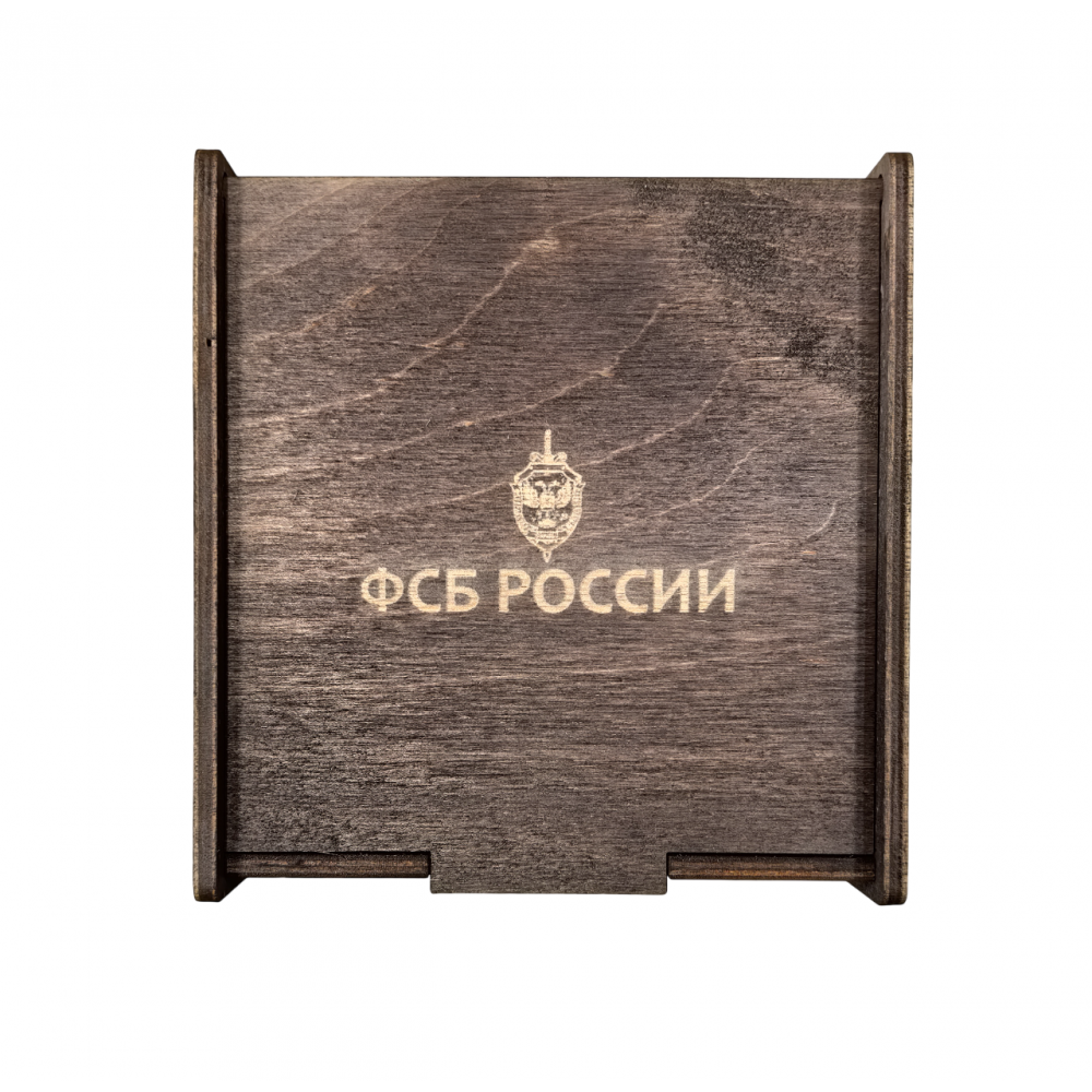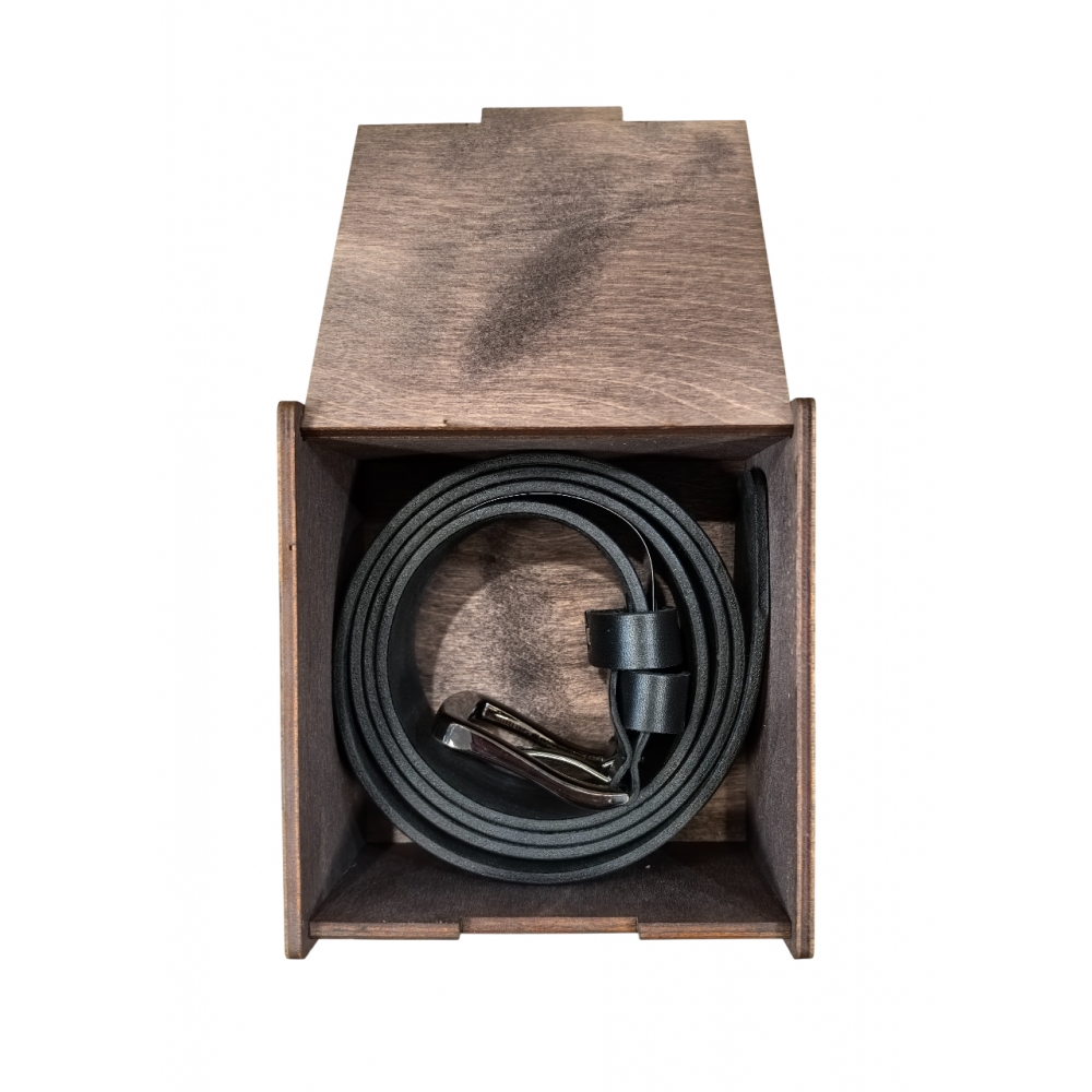 Кожаный ремень с тиснением "ФСБ РФ" в подарочной деревянной коробке. Длина ремня 125 см. Размер коробки 11*11*6 см.